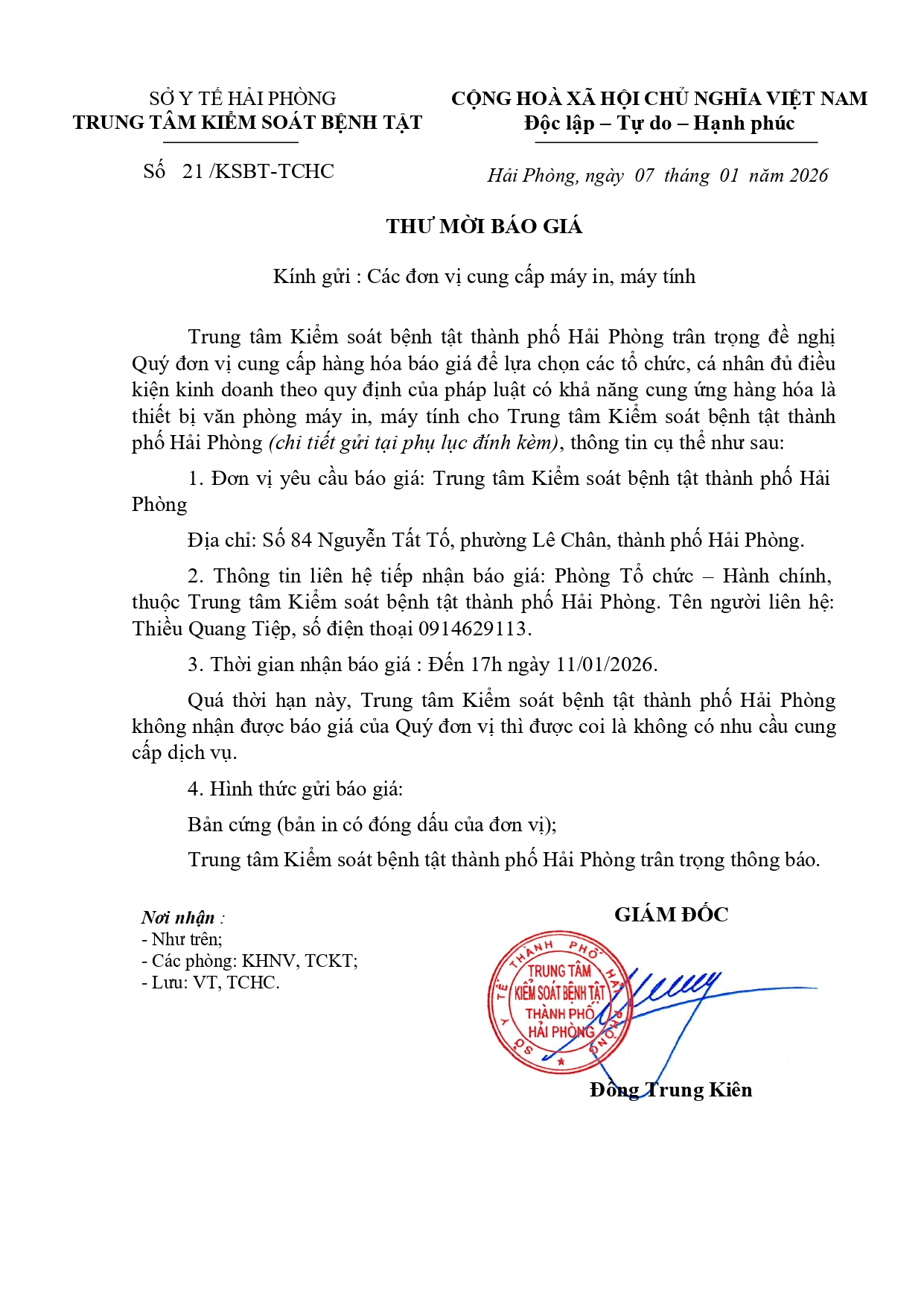 Thứ 4, 07/01/2026 | 08:40 A- A A+ | 21 TMBG cung cấp máy in, máy tính Thu_moi_bao_gia_may_vi_tinh__may_in_signed_aa702f94ac.pdf Đọc bài Lưu Tập tin đính kèm Tổng số điểm của bài viết là: 0 trong 0 đánh giá Click để đánh giá bài viết