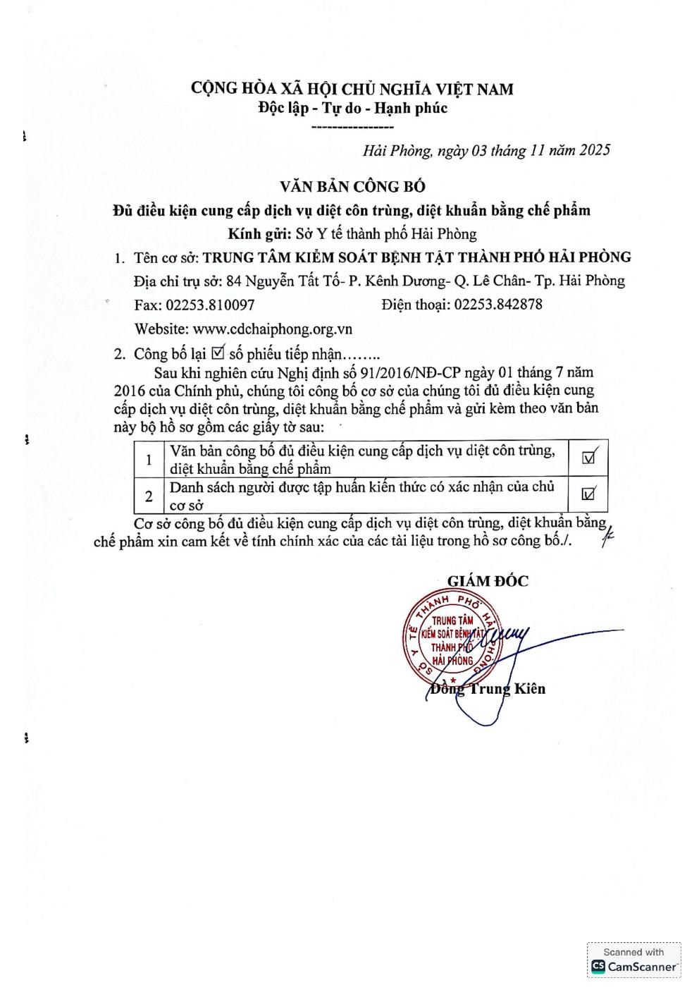 - Có văn bản công bố đủ điều kiện phun diệt côn trùng, diệt khuẩn được Sở Y tế chấp thuận (theo quy định tại Nghị định 91/2016/NĐ-CP và các văn bản sửa đổi, hướng dẫn liên quan).