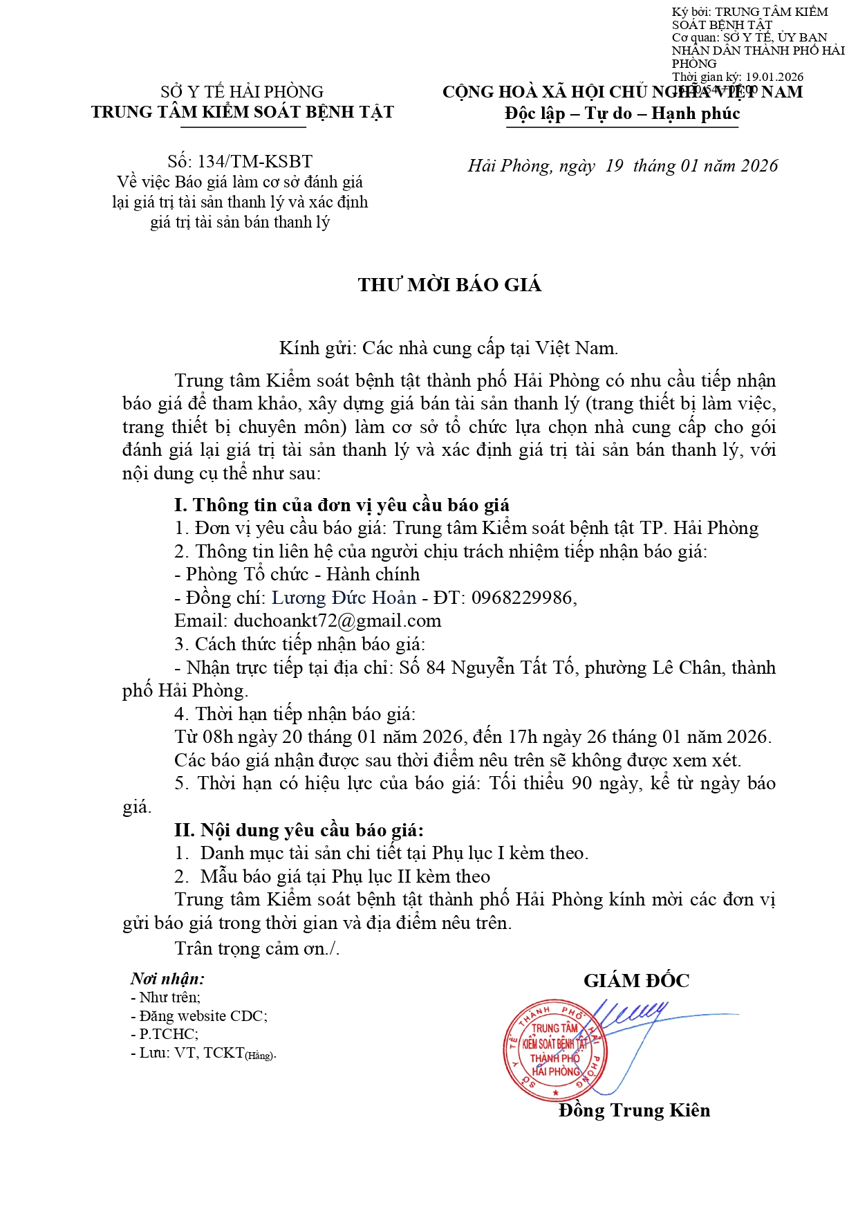 Thứ 2, 19/01/2026 | 15:54 A- A A+ | 134/TM-KSBT v/v Báo giá làm cơ sở đánh giá lại giá trị tài sản thanh lý và xác định giá trị tài sản bán thanh lý 1__Thu_moi_bao_gia_TTB_thanh_ly_2026_-_Final_signed_31278377e1.pdf Đọc bài Lưu Tập tin đính kèm Tổng số điểm của bài viết là: 0 trong 0 đánh giá Click để đánh giá bài viết
